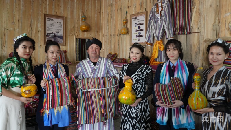 尉犁县税务局干部观摩学习古老的手工纺织技艺“帕孜拉”(央广网发 余江 摄)